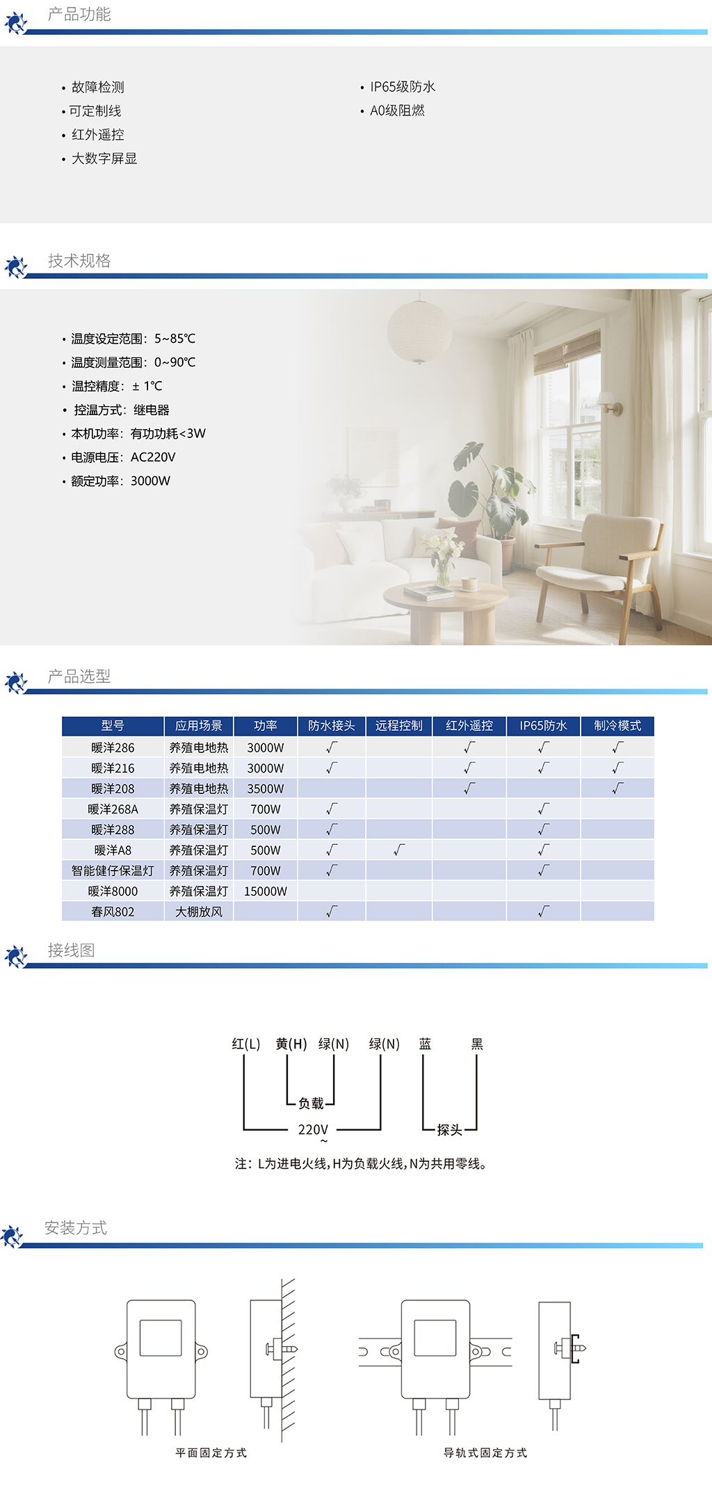 暖洋286  養殖場電地暖/電伴熱溫控器(3kw)