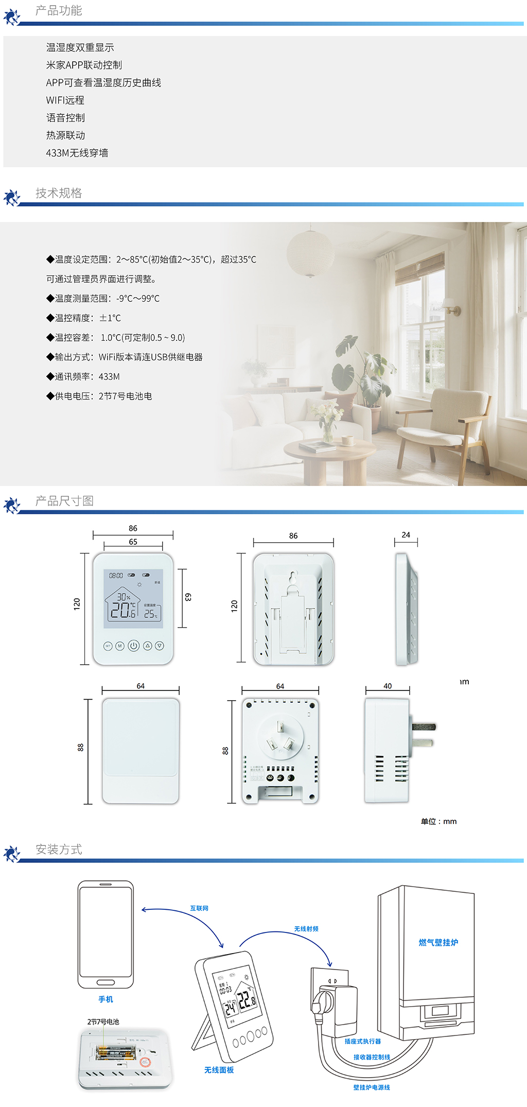 率先在國內研發了智能溫控器、智能控制系統和物聯網云平臺,推動了電取暖、燃氣取暖、中央空調、農業養殖等多個領域的技術應用