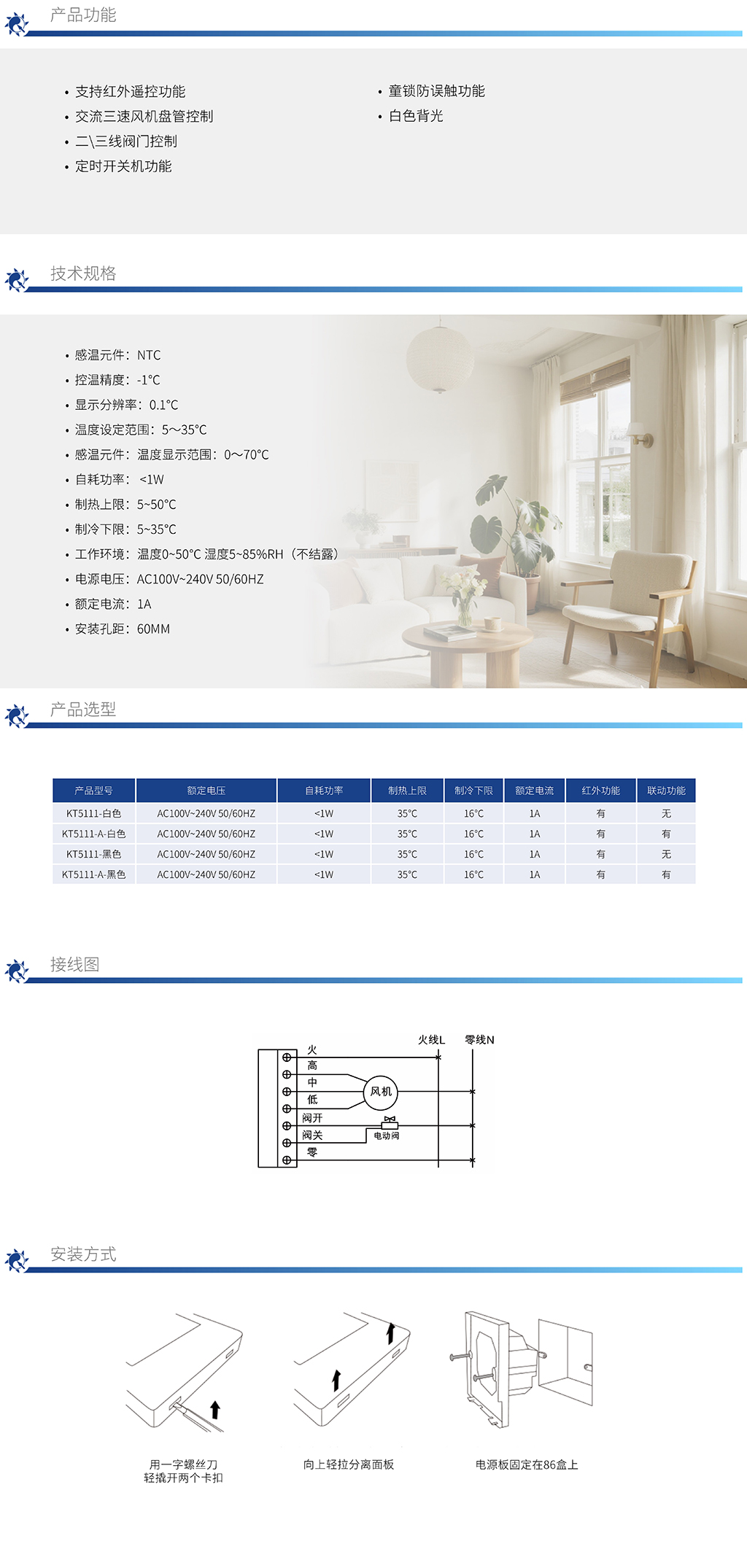 KT5111 交流風盤觸摸溫控器-黑