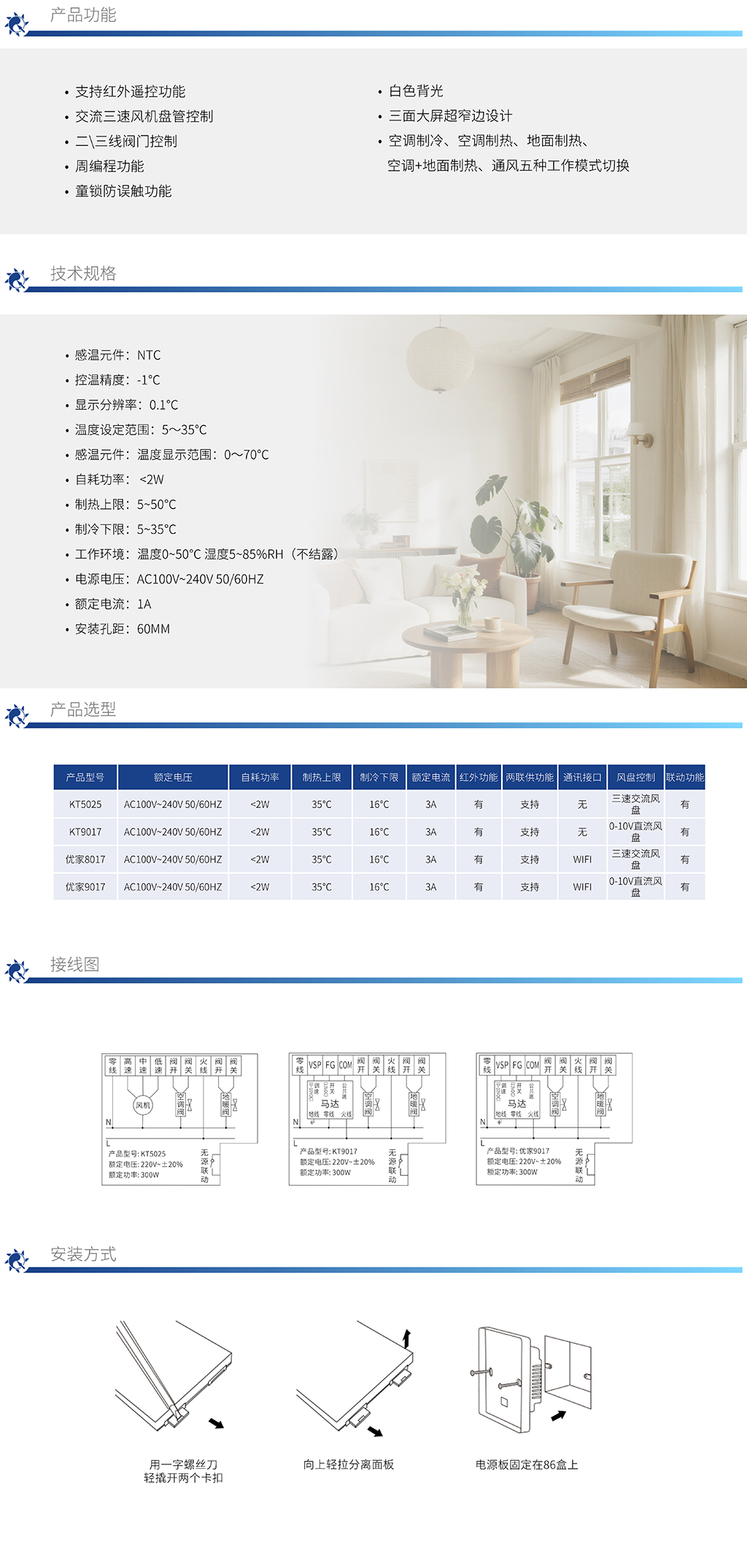 優家9017 WIFI版直流風盤按鍵溫控器